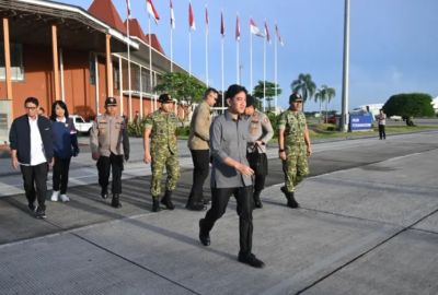 Sandiaga Uno, disambut Hengky Honandar Wakil Walikota Bitung, Audy Pangemanan Sekda Bitung, Pingkan Kapoh Kepala Dinas Pariwisata Kota Bitung unsur Forkopimda Bitung serta pemerintah Kelurahan setempat dan Kecamatan Aertembaga.